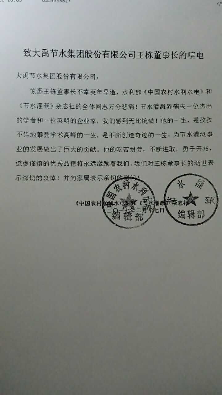 《中國(guó)農(nóng)村水利水電》及《節(jié)水灌溉》編輯部唁電