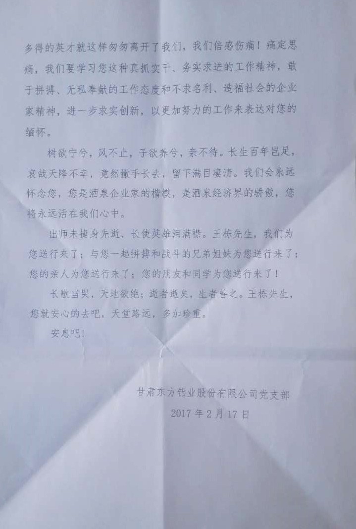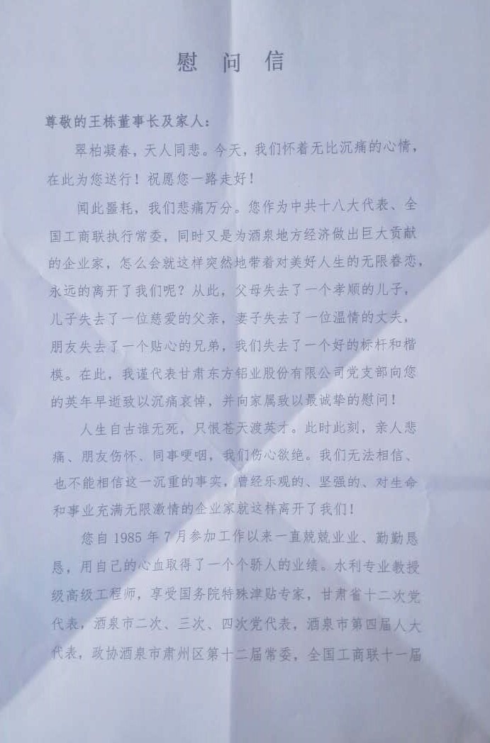 您當(dāng)前的位置: 網(wǎng)站首頁 > 各界人士沉痛悼念集團(tuán)公司董事長王棟先生 > 各界人士沉痛悼念集團(tuán)公司董事長王棟先生 >