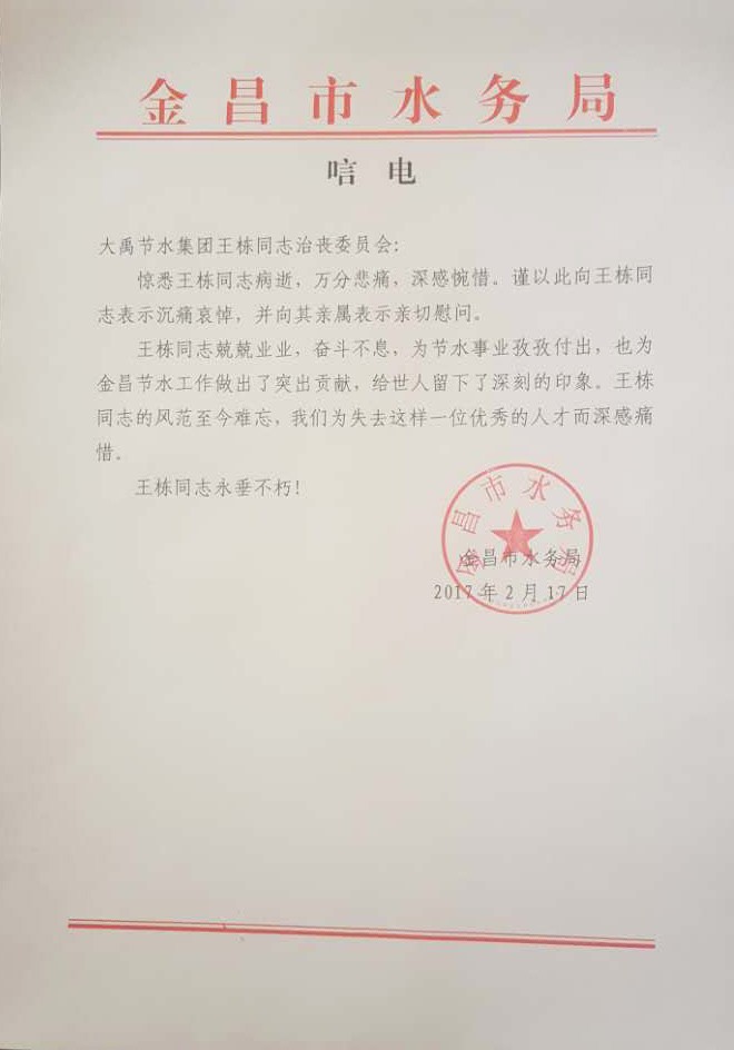 您當(dāng)前的位置: 網(wǎng)站首頁(yè) > 各界人士沉痛悼念集團(tuán)公司董事長(zhǎng)王棟先生 > 各界人士沉痛悼念集團(tuán)公司董事長(zhǎng)王棟先生 >