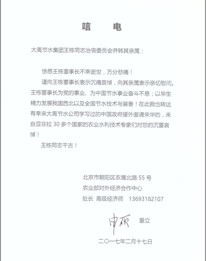 您當(dāng)前的位置: 網(wǎng)站首頁 > 各界人士沉痛悼念集團(tuán)公司董事長(zhǎng)王棟先生 > 各界人士沉痛悼念集團(tuán)公司董事長(zhǎng)王棟先生 >