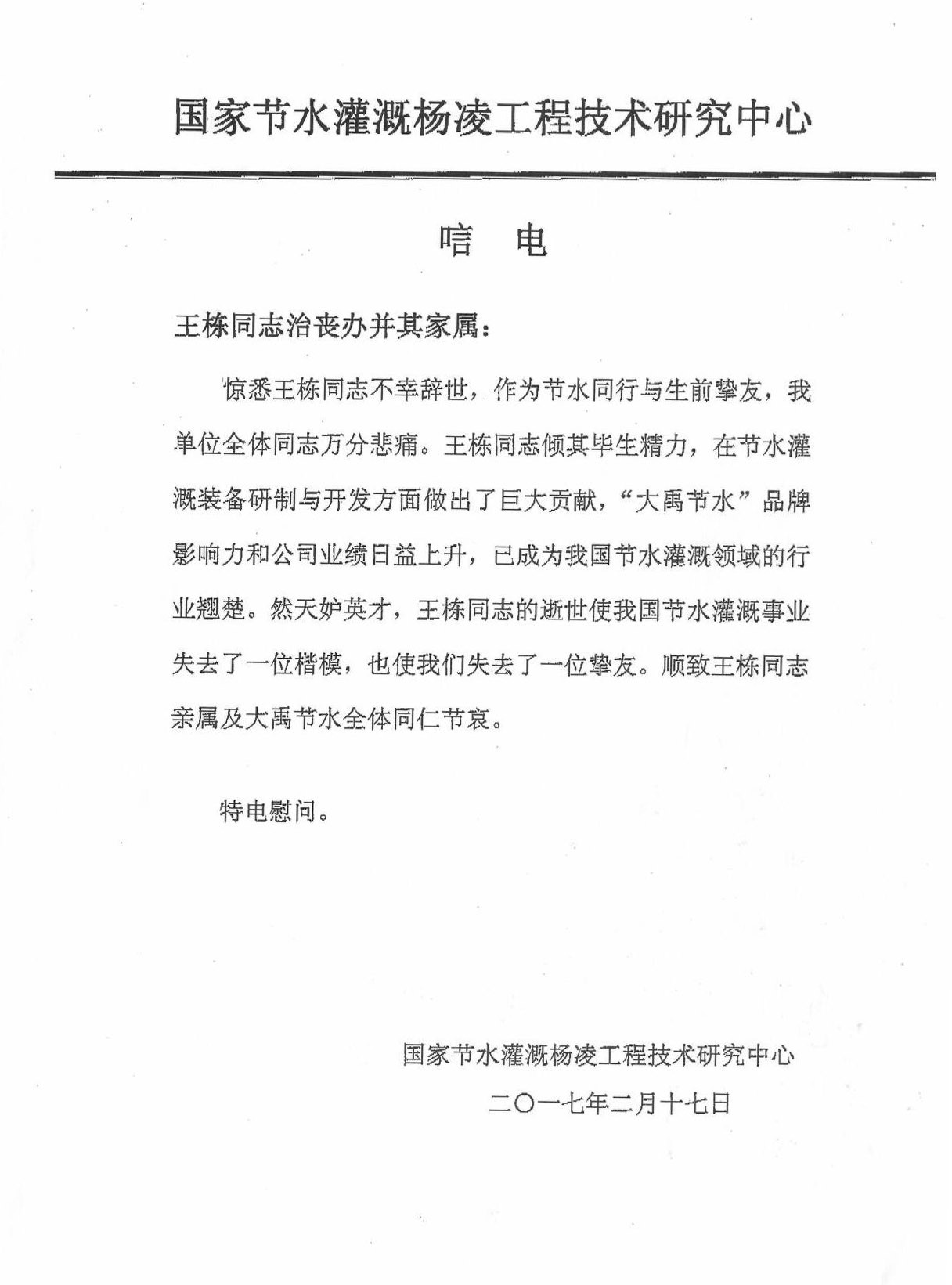 國(guó)家節(jié)水灌溉楊凌工程技術(shù)研究中心唁電
