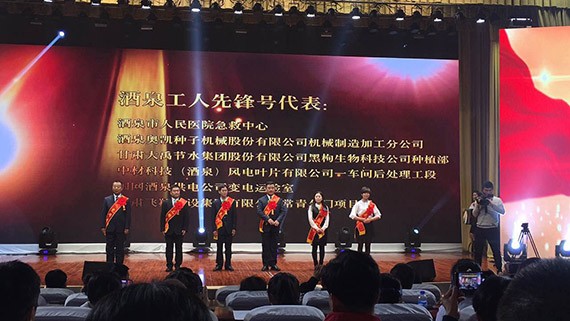 酒泉市領(lǐng)導康軍、都偉、楊小麗、李永軍、王敏、何謀保、李如檀、何春山出席頒獎典禮,并為評選出的"酒泉工匠"及"工人先鋒號""五一巾幗獎""優(yōu)秀工會工作者"代表頒獎。市委常委、市總工會主席王敏主持頒獎典禮。