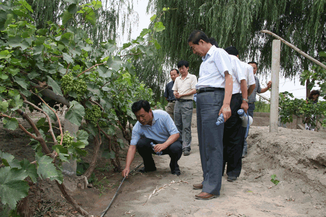 王曉東司長、康國璽廳長、王喜成市長一行參觀葡萄紊流滴灌