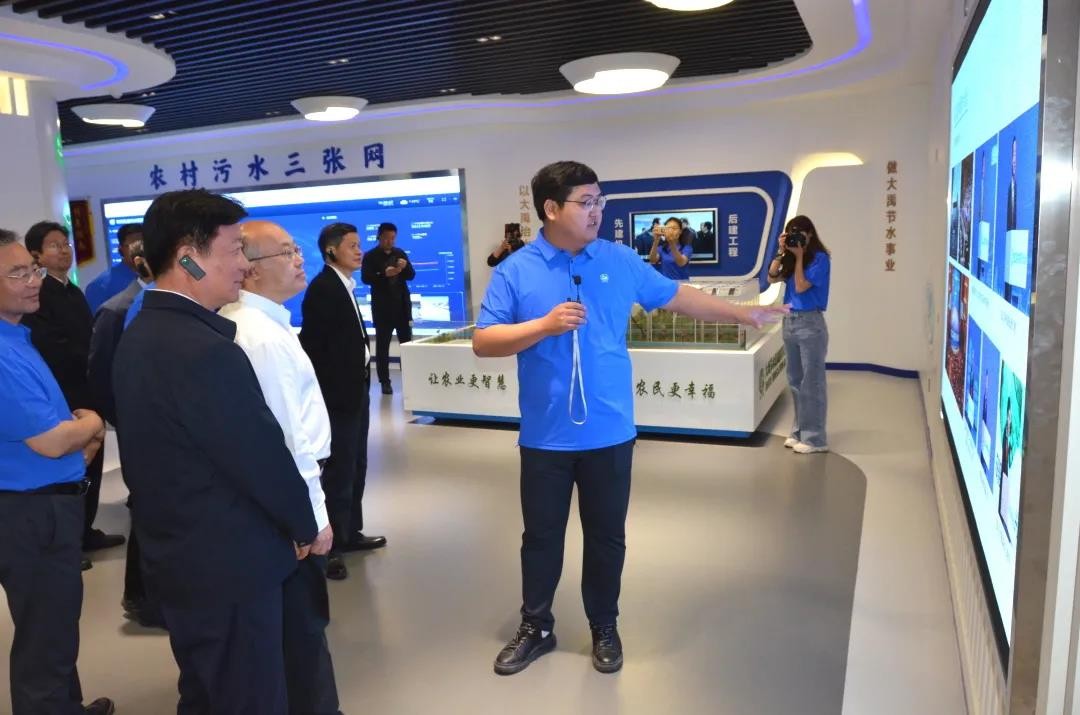 王正譜一行參觀了武清區(qū)農(nóng)村生活污水處理項目調(diào)度中心、水質(zhì)檢測室,王浩宇重點指出智慧室、智慧信息終端產(chǎn)品室的高效節(jié)水灌溉智能化工程建設(shè)提供整體解決方案的智能水表、測控一體化閘門等硬件產(chǎn)品。其中智能水表已經(jīng)成功應用到元謀縣丙間灌區(qū)11.4萬畝高效節(jié)水灌溉項目;測控一體化閘門完全由公司自主研發(fā)、擁有知識產(chǎn)權(quán)并成功應用到河北永定河洋河二灌區(qū)等多個項目,這些項目為當?shù)孬@帶來了良好的社會效益、經(jīng)濟效益、生態(tài)效益。