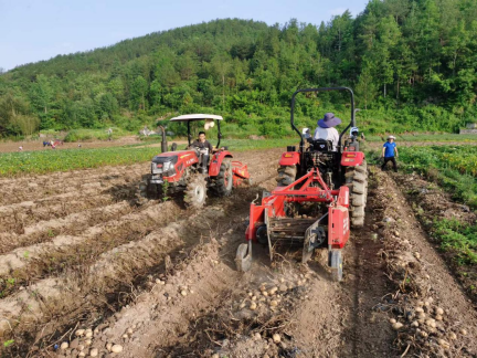 湖北省恩施土家族苗族自治州 ,地處神奇的北緯30°,森林覆蓋率近70%,享有“鄂西林?!薄笆澜缥肌钡姆Q號。在這片富饒的土地上,大禹種植基地正呈現(xiàn)出一片繁忙的景象,收割機在田間穿梭作業(yè),機械臂忙碌揮舞,如金色珍珠般的富硒土豆破土而出,大禹新農人密切協(xié)作,分工明確,喜迎大豐收。
