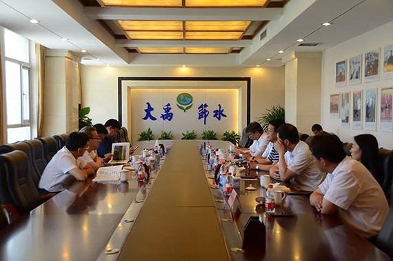 實地考察結束后,雙方進行了座談。王沖對酒泉市委書記吳仰東一行蒞臨大禹節(jié)水集團檢查指導表示衷心感謝和熱烈歡迎。王沖表示,大禹節(jié)水集團作為酒泉本土企業(yè),不斷發(fā)展壯大成為行業(yè)龍頭企業(yè),離不開酒泉市委的支持。大禹節(jié)水集團緊扣時代脈搏,以“讓農(nóng)業(yè)更智慧,讓農(nóng)村更美好,讓農(nóng)民更幸?!睘槭姑瑖@八大業(yè)務板塊,積極發(fā)展智慧農(nóng)業(yè),在國內(nèi)取得良好的示范效應。武清區(qū)污水處理項目建設取得了良好的處理效果,大禹節(jié)水集團將會積極參與酒泉市污水處理和美麗鄉(xiāng)村建設,為建設幸福魅力新酒泉貢獻大禹智慧。