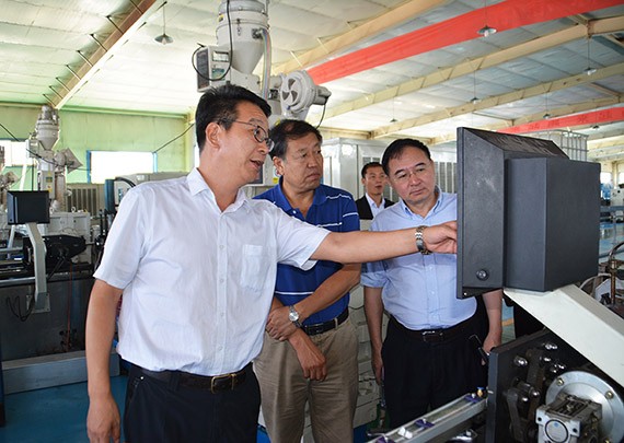 隨后,郭志偉副司長(zhǎng)一行深入大禹節(jié)水(酒泉)有限公司滴灌生產(chǎn)車間一線實(shí)地調(diào)研,邊走邊看,邊聽邊問,了解企業(yè)生產(chǎn)經(jīng)營(yíng)及科技創(chuàng)新和科研成果推廣應(yīng)用等情況,王沖就公司產(chǎn)品研發(fā)及生產(chǎn)經(jīng)營(yíng)等基本情況進(jìn)行了匯報(bào)介紹。