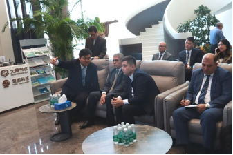 參加此次考察的還有烏茲別克斯坦共和國水利部改革辦主任朱拉耶夫·伊哈姆,烏茲別克斯坦共和國駐華大使館投資工業(yè)與貿(mào)易部代表處經(jīng)理帖穆爾別·尤斯波夫、秘書奧塔·奧貝德賈諾夫;大禹節(jié)水集團(tuán)設(shè)計(jì)集團(tuán)董事長嚴(yán)文學(xué)、大禹節(jié)水集團(tuán)慧圖集團(tuán)常務(wù)副總裁廖華軒等陪同座談。