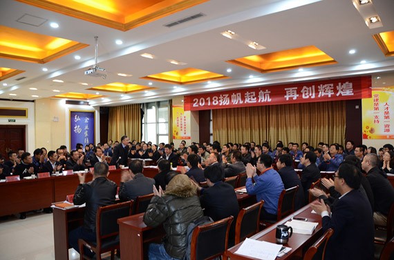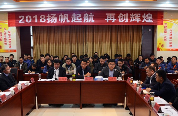 大會的主題是:2018揚帆起航 再創(chuàng)輝煌,集團公司總裁謝永生主持大會。