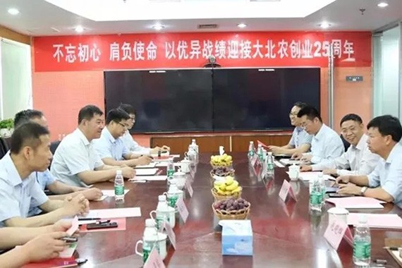 大禹節(jié)水集團公司總裁謝永生對大北農(nóng)集團總部和農(nóng)信總部進行了參觀,觀看了大北農(nóng)集團企業(yè)宣傳片,聽取了副總經(jīng)理徐萬濤對大北農(nóng)集團的詳細介紹。并現(xiàn)場與徐萬濤副總經(jīng)理進行了深入交流。
