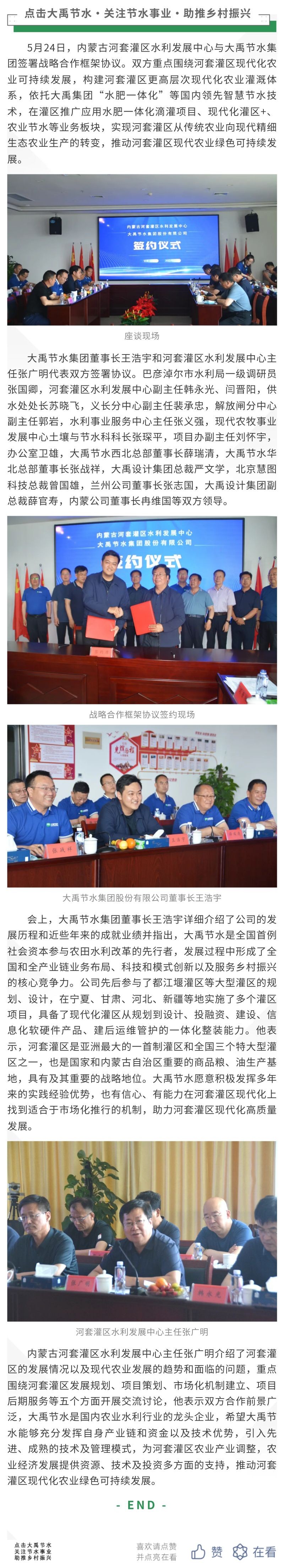 大禹動態(tài)| 內(nèi)蒙古河套灌區(qū)水利發(fā)展中心與大禹節(jié)水集團(tuán)簽署戰(zhàn)略合作框架協(xié)議
