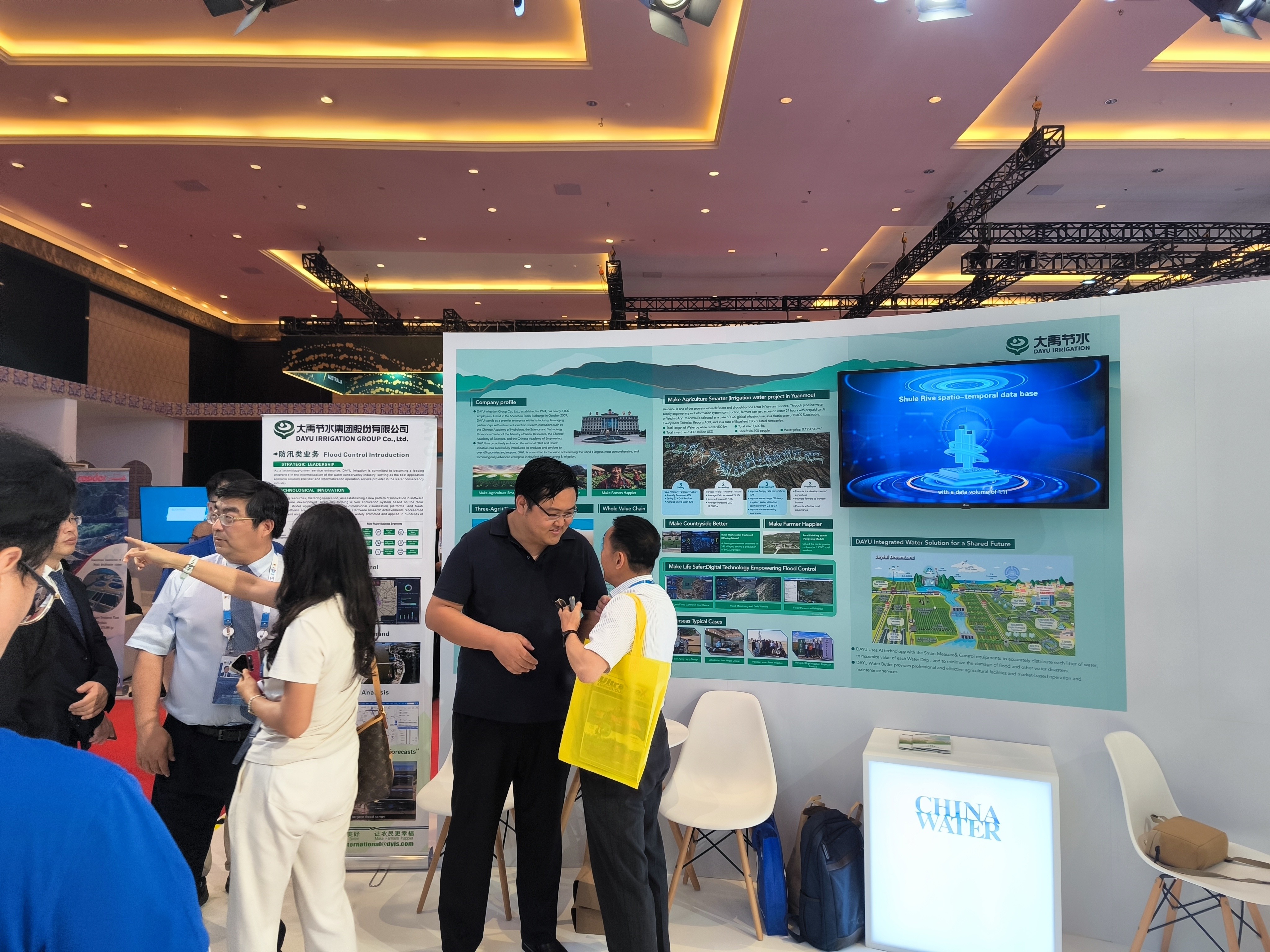 論壇同期舉行了世界水展,中國館位于國家館主館區(qū),集中展現(xiàn)了中國水利工程、技術(shù)等方面的卓越成就。大禹節(jié)水作為行業(yè)龍頭企業(yè),展區(qū)內(nèi)人潮涌動,熱鬧非凡,大禹節(jié)水一體化解決方案成為參觀者駐足的焦點。期間,水利部部長李國英蒞臨大禹節(jié)水展位參觀,聽取集團董事長王浩宇對公司業(yè)務(wù)及項目等情況的匯報。