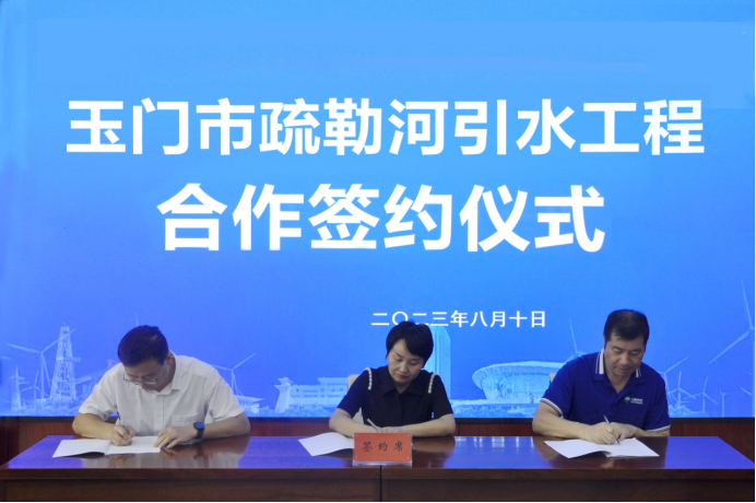此次簽約儀式,由甘肅省玉門市政府、玉門市水務局、北京碧水源科技股份有限公司、大禹節(jié)水集團股份有限公司、玉門市豐源園區(qū)開發(fā)有限公司、玉門碧禹泓盛水務有限公司六家單位簽訂《玉門市疏勒河引水工程投資協(xié)議》、《玉門市疏勒河引水工程股東協(xié)議》、《戰(zhàn)略合作框架協(xié)議》等項目建設運行相關協(xié)議。