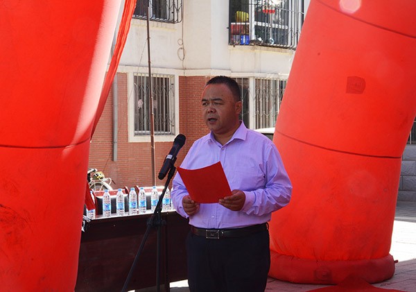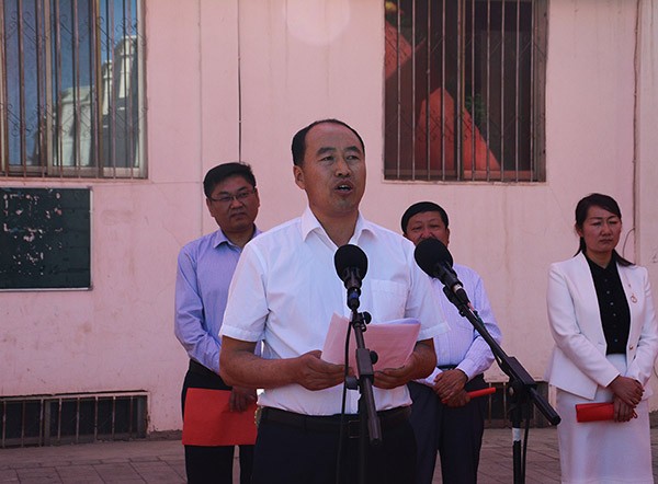 酒泉市委常委、統(tǒng)戰(zhàn)部長(zhǎng)胡曉華宣布肅州區(qū)民族團(tuán)結(jié)進(jìn)步宣傳月幫扶暨民族團(tuán)結(jié)進(jìn)步示范社區(qū)創(chuàng)建活動(dòng)正式啟動(dòng)。