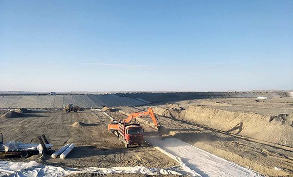 在大禹節(jié)水集團(tuán)承建的阿克塞抗旱應(yīng)急調(diào)蓄水庫工程PPP項目工地建設(shè)現(xiàn)場,機(jī)具轟鳴、車輛穿梭、人頭攢動,呈現(xiàn)出井然有序、一派繁忙的建設(shè)場景。