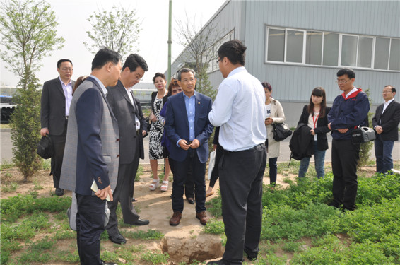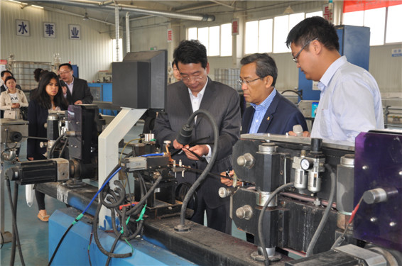 大禹節(jié)水(天津)有限公司董事長(zhǎng)王沖陪同柬埔寨國(guó)家副首相、奉辛比克黨主席蓋博拉斯美一行在滴灌帶車間參觀考察