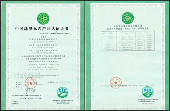 近日,大禹節(jié)水集團(tuán)及轄屬酒泉、武威、天津三家公司生產(chǎn)的滴灌管(帶)、PE/PVC管材、管件產(chǎn)品分別通過中國環(huán)境標(biāo)志產(chǎn)品認(rèn)證,獲得中環(huán)聯(lián)合(北京)認(rèn)證中心頒發(fā)的環(huán)境標(biāo)志產(chǎn)品認(rèn)證證書,這是繼節(jié)水產(chǎn)品認(rèn)證之后公司主打產(chǎn)品取得的又一項(xiàng)重要產(chǎn)品認(rèn)證。