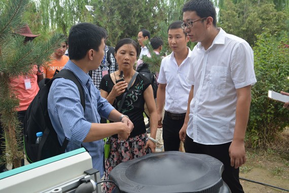 大禹節(jié)水集團(tuán)技術(shù)負(fù)責(zé)人正在向"2016年發(fā)展中國(guó)家干旱區(qū)水資源可持續(xù)發(fā)展研修班"學(xué)員介紹公司全自動(dòng)施肥過(guò)濾設(shè)備