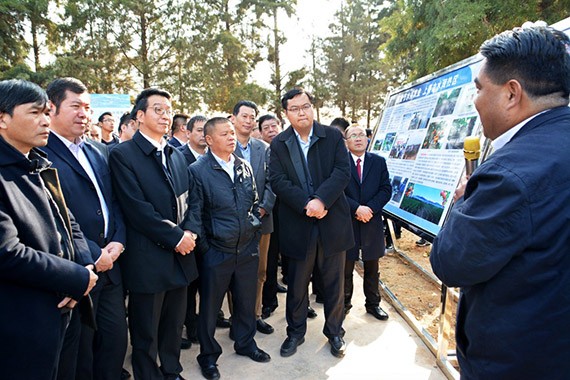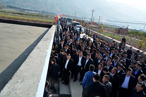 2月8日,大禹節(jié)水集團(tuán)公司多彩云南行業(yè)務(wù)考察學(xué)習(xí)團(tuán)現(xiàn)場(chǎng)考察了賓川縣東干渠6萬(wàn)畝高效節(jié)水灌溉項(xiàng)目建設(shè)情況。賓川縣人民政府副縣長(zhǎng)楊映紅現(xiàn)場(chǎng)向公司考察團(tuán)介紹了賓川縣高原特色農(nóng)業(yè)發(fā)展情況和全縣高效節(jié)水工作開(kāi)展情況;云南公司副總經(jīng)理張志國(guó)現(xiàn)場(chǎng)介紹了項(xiàng)目建設(shè)基本情況。集團(tuán)公司黨委書記王沖、董事長(zhǎng)王浩宇現(xiàn)場(chǎng)向大理州委常委、賓川縣委書記岳黎松,賓川縣人大常委會(huì)主任張成良及縣政協(xié)主席陳源等賓川縣四大班子領(lǐng)導(dǎo)匯報(bào)了項(xiàng)目建設(shè)情況。