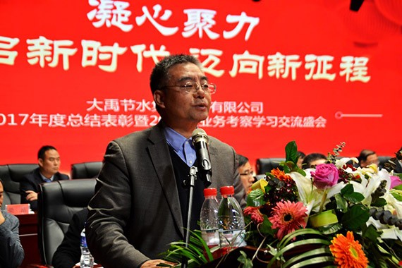 在熱烈的掌聲中,大禹節(jié)水集團(tuán)股份有限公司董事長王浩宇代表董事會(huì)向大會(huì)做了題為《薪火相承 不忘初心 為加快推進(jìn)集團(tuán)公司做優(yōu)做強(qiáng)而努力奮斗》的工作報(bào)告,全面總結(jié)回顧了集團(tuán)2017年各項(xiàng)工作,明確了集團(tuán)新時(shí)期產(chǎn)業(yè)定位和發(fā)展思路,并對(duì)2018年總體工作進(jìn)行安排部署。