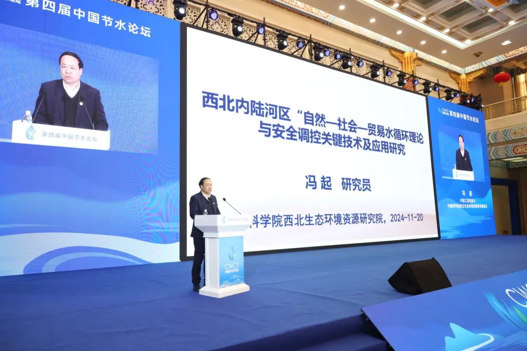馮起以“西北內(nèi)陸河區(qū)‘自然—社會—貿(mào)易’水循環(huán)理論與安全調(diào)控關(guān)鍵技術(shù)及應(yīng)用研究”為主題,介紹了西北內(nèi)陸河區(qū)“自然—社會—貿(mào)易”水循環(huán)理論與安全調(diào)控關(guān)鍵技術(shù)及應(yīng)用研究課題設(shè)立的背景,交流了研究成果。馮起指出,經(jīng)濟(jì)社會、生態(tài)環(huán)境對水資源需求競爭矛盾十分激烈,變化環(huán)境下西北內(nèi)陸區(qū)水文水資源形勢發(fā)生較大變化,水資源短缺、生態(tài)環(huán)境問題十分突出,生態(tài)環(huán)境保護(hù)和高質(zhì)量開放發(fā)展成為當(dāng)前及今后一個時期國家關(guān)注西北區(qū)域的核心,也是統(tǒng)籌西北區(qū)域安全與發(fā)展全局的關(guān)鍵。水是社會與生態(tài)之間的紐帶,理解水循環(huán)是水、生態(tài)安全調(diào)控的關(guān)鍵,掌握自然水循環(huán)是開展調(diào)控的基礎(chǔ),透析社會水循環(huán)是有效調(diào)控的核心,理解貿(mào)易水循環(huán)是良性運行的關(guān)鍵。