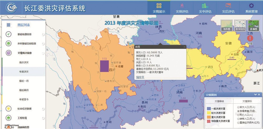利用防汛抗旱綜合數(shù)據(jù)資源和預(yù)報(bào)、調(diào)度等業(yè)務(wù)信息,結(jié)合洪災(zāi)評(píng)估標(biāo)準(zhǔn),采用GIS(地理信息系統(tǒng))、RS(遙感)等先進(jìn)技術(shù),開(kāi)發(fā)洪災(zāi)評(píng)估系統(tǒng),實(shí)現(xiàn)災(zāi)前、災(zāi)中和災(zāi)后三階段洪災(zāi)評(píng)估功能。