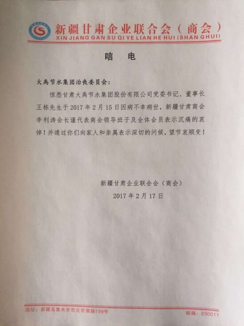 新疆甘肅企業(yè)聯(lián)合會唁電