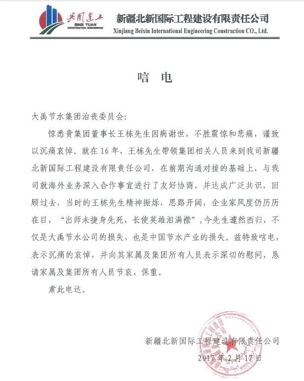 您當(dāng)前的位置: 網(wǎng)站首頁 > 各界人士沉痛悼念集團公司董事長王棟先生 > 各界人士沉痛悼念集團公司董事長王棟先生 >