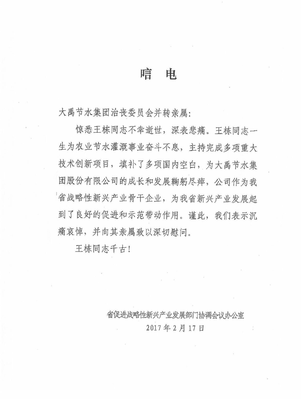 甘肅省促進(jìn)戰(zhàn)略性新興產(chǎn)業(yè)發(fā)展部門協(xié)調(diào)會(huì)議辦公室唁電