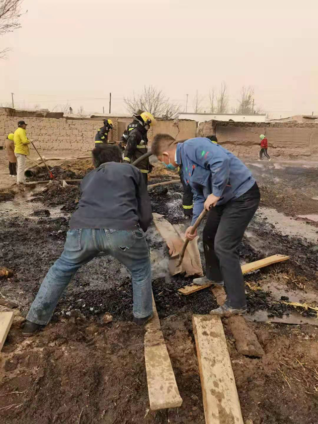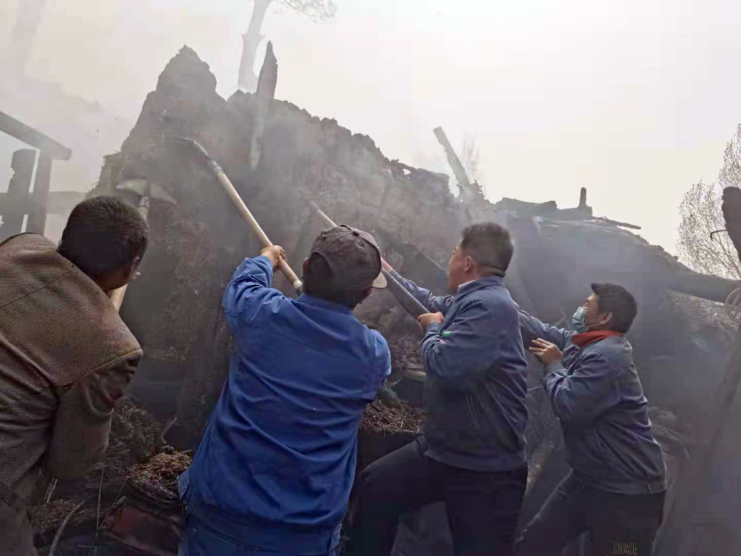 2021年4月25日中午1點10分左右,大禹節(jié)水酒泉農(nóng)業(yè)科技公司副總經(jīng)理王建兵帶領(lǐng)種植部員工李大雪、柴玉林,酒泉工廠pvc車間沈春、黃海濤、郭亮在肅州區(qū)三墩鎮(zhèn)臨水村種植基地進行玉米種植和小麥追肥、澆灌工作時,發(fā)現(xiàn)仰溝八組一村民家后院附近濃煙滾滾。當時風(fēng)速達7級左右,火借風(fēng)勢,瞬間有三家農(nóng)戶后院連片起火。大禹節(jié)水員工立即撥打119消防救援電話,告知著火地點及火勢情況,隨后沖向了火災(zāi)現(xiàn)場。