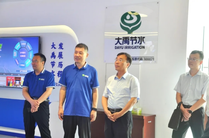 簽約儀式前,李守學(xué)書記一行先后參觀了大禹節(jié)水集團(tuán)文化展廳、生態(tài)環(huán)保運(yùn)維調(diào)度中心、灌區(qū)現(xiàn)代化管理模型、農(nóng)業(yè)節(jié)水滴灌車間、測(cè)控一體化閘門車間及智能水表車間等多個(gè)區(qū)域,深入了解了大禹節(jié)水的產(chǎn)業(yè)優(yōu)勢(shì)和品牌實(shí)力,為未來(lái)雙方全面合作奠定了堅(jiān)實(shí)基礎(chǔ)。