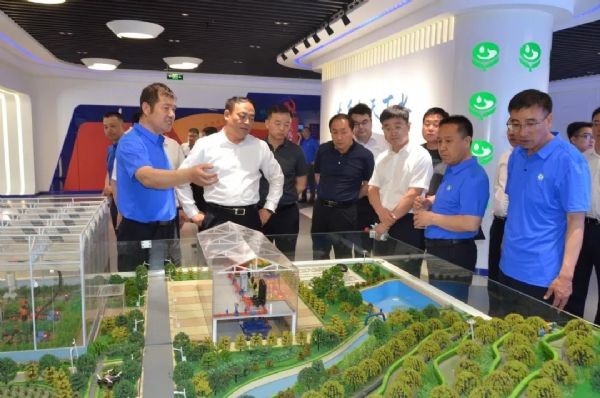謝永生向呂來升一行介紹大禹智慧生態(tài)沙盤