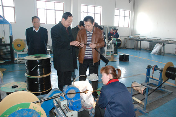 2011年2月10日,正值農(nóng)歷正月初八下午,酒泉市副市長、玉門市委書記詹順舟率領(lǐng)工信委主任等,帶著市委市政府的關(guān)懷來公司考察調(diào)研工作,詹市長一行在公司董事長王棟、副董事長王沖等高管的陪同下,來到滴灌車間,把政府的溫暖和關(guān)懷帶給了正在滴灌管(帶)生產(chǎn)線、PVC生產(chǎn)線作業(yè)的工人們,在滴頭生產(chǎn)線旁,詹市長一行觀看了滴頭等節(jié)水產(chǎn)品的生產(chǎn)過程,仔細(xì)詢問了滴灌帶的生產(chǎn)加工流程,性能以及在應(yīng)用中的各項(xiàng)事宜。詹市長一行在公司三樓會議室舉行了座談會。董事長王棟匯報(bào)了公司的工作情況,并就酒泉市委市政府即將出臺的“中共酒泉市委酒泉市人民政府關(guān)于加快“6+2”產(chǎn)業(yè)群建設(shè)推進(jìn)工業(yè)跨越發(fā)展的意見”和“七大行動計(jì)劃”提出了意見和建議。