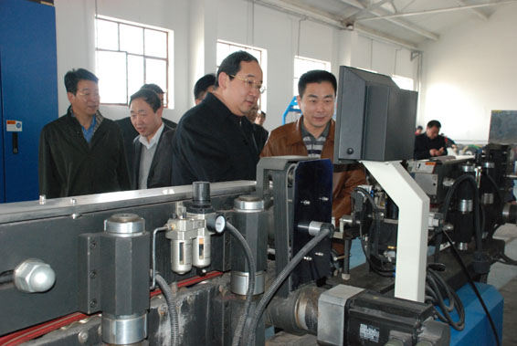 在公司新滴灌車間詹市長饒有興致的了解滴灌帶生產(chǎn)線數(shù)控設(shè)備的運(yùn)行原理
