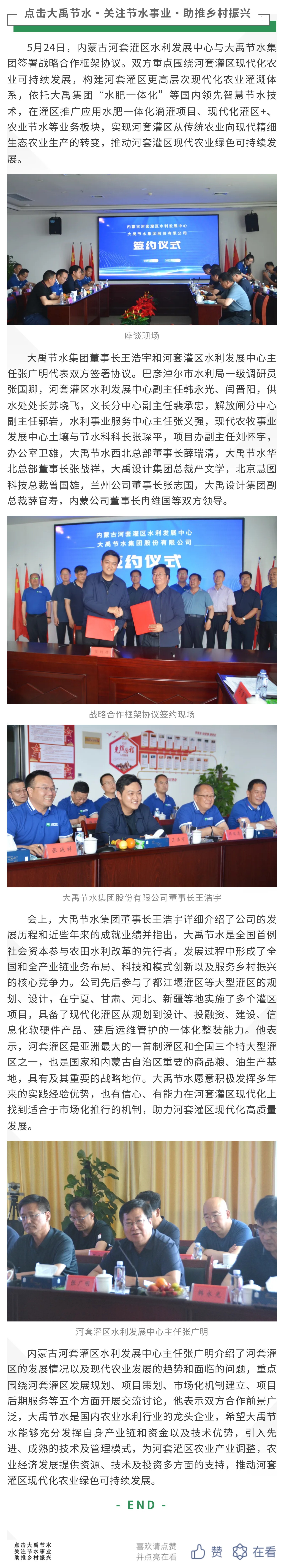 大禹動態(tài)| 內(nèi)蒙古河套灌區(qū)水利發(fā)展中心與大禹節(jié)水集團(tuán)簽署戰(zhàn)略合作框架協(xié)議