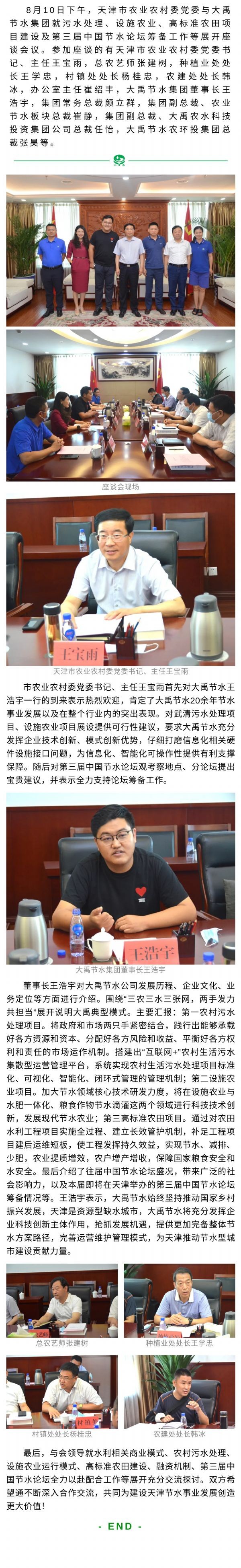 天津市農委主任王寶雨等會見大禹節(jié)水董事長王浩宇一行
