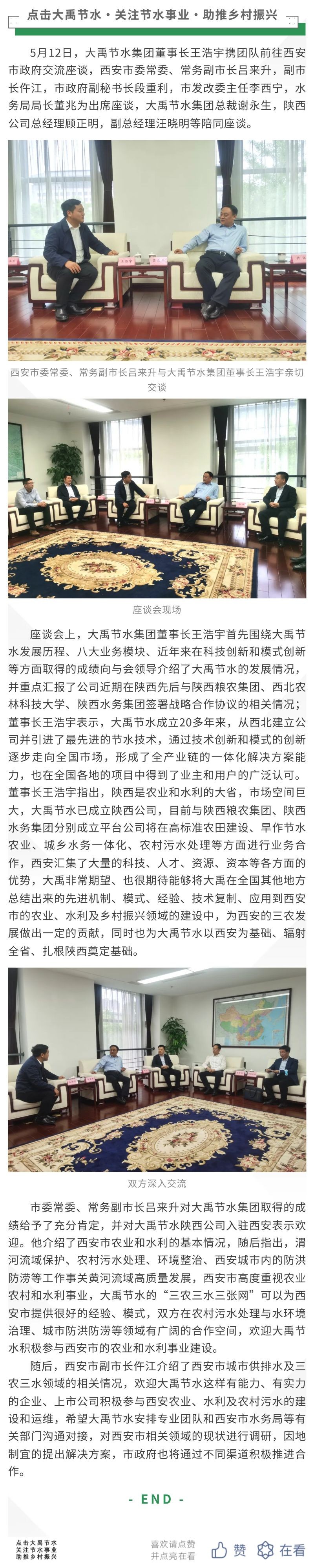 大禹動態(tài)| 西安市委常委、常務(wù)副市長呂來升會見大禹節(jié)水集團(tuán)董事長王浩宇一行