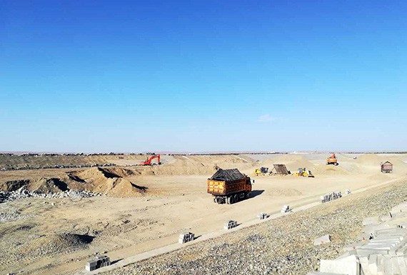在大禹節(jié)水集團(tuán)承建的阿克塞抗旱應(yīng)急調(diào)蓄水庫工程PPP項目工地建設(shè)現(xiàn)場,機(jī)具轟鳴、車輛穿梭、人頭攢動,呈現(xiàn)出井然有序、一派繁忙的建設(shè)場景。