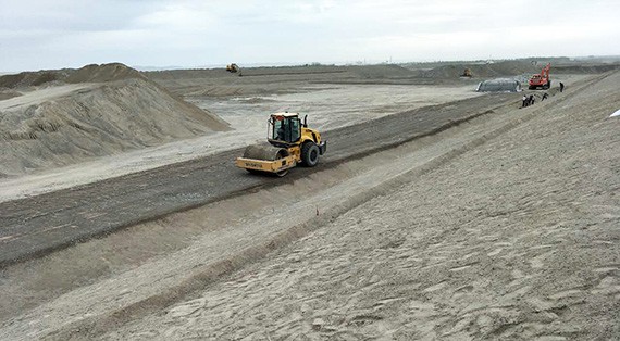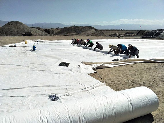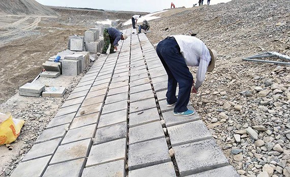 阿克塞抗旱應(yīng)急調(diào)蓄水庫工程從6月10日開工,通過三個半月的緊張施工,截止9月25日,共計完成壩基清理外運9.8萬m?,庫底清理外運23.9萬m?,砂礫石開挖外運43萬m?,壩體夯填18萬m?,混凝土預(yù)制磚完成4400m?,進(jìn)出水口管道焊接616m,墊層15000m?,細(xì)沙保護(hù)料鋪筑5166.59 m?,庫底篩分細(xì)砂保護(hù)料24000 m?,防滲膜鋪設(shè)63000㎡,完成供電設(shè)施77.7萬元,其他臨時建筑47.8萬元。目前壩體夯填及庫底清理、砂礫石開挖外運、壩體土工膜鋪設(shè)及墊層料鋪筑已全部完成,預(yù)制磚襯砌2000m?,共計完成投資2661.98萬元,預(yù)制磚襯砌及庫底土工膜鋪設(shè)工作正在抓緊進(jìn)行。