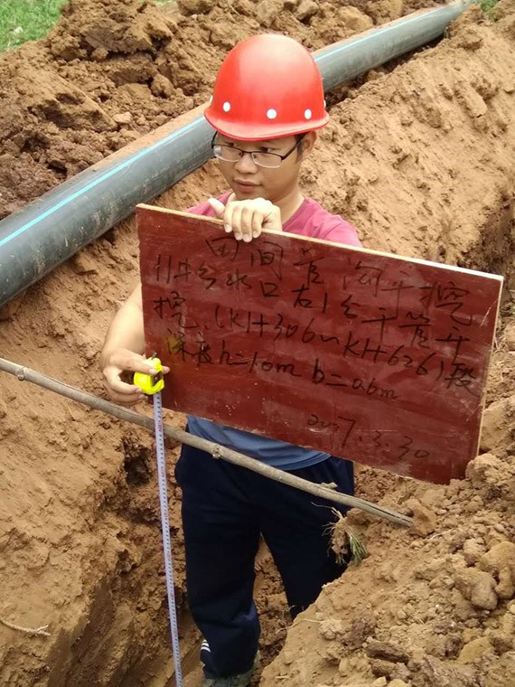 ▲管溝開挖,元謀PPP項目部同事兢兢業(yè)業(yè)一絲不茍,精算到毫米