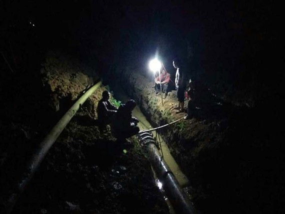 ▲西疇項目部同事正在調(diào)試維修設備,確保滴水不漏
