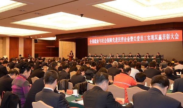 全國總工會副主席、書記處書記蔡振華主持會議。人力資源和社會保障部副部長張義珍、全國工商聯(lián)副主席謝經(jīng)榮、全國工商聯(lián)副主席李兆前,全國總工會副主席、書記處書記焦開河出席會議,并為榮獲全國就業(yè)與社會保障先進(jìn)民營企業(yè)、全國關(guān)愛員工實(shí)現(xiàn)雙贏先進(jìn)集體與個(gè)人榮譽(yù)的代表頒獎(jiǎng)。