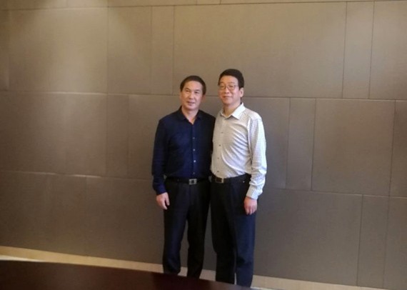 ▲重慶市水利局局長(zhǎng)王愛(ài)祖與大禹節(jié)水集團(tuán)公司黨委書(shū)記、副董事長(zhǎng)王沖一行座談