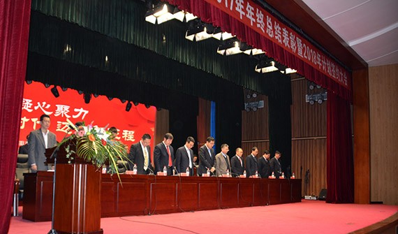 黨委書記王沖作重要講話。王沖代表公司黨委和班子,向在2017年里為集團(tuán)公司改革發(fā)展付出聰明才智和辛勤汗水的干部職工們致以最崇高敬意!并就做好2018年各項(xiàng)工作要求廣大干部職工一要總結(jié)經(jīng)驗(yàn),堅(jiān)定信心,客觀評(píng)價(jià)2017年度的工作成績,繼續(xù)鼓舞全員斗志,以飽滿的精神投入到工作中去,堅(jiān)定不移地奪取2018年各項(xiàng)事業(yè)的"開門紅";要求廣大干部職工要認(rèn)清形勢,取長補(bǔ)短,充分認(rèn)清距離現(xiàn)代化企業(yè)集團(tuán)間的不足與差距,牢固樹立強(qiáng)烈的危機(jī)意識(shí),不斷學(xué)習(xí),不斷進(jìn)步,為集團(tuán)公司長足發(fā)展凝聚不竭動(dòng)力;要廣納賢才,量才適用,充分發(fā)揮集團(tuán)公司的人才資源優(yōu)勢,進(jìn)一步激發(fā)各級(jí)人員的工作熱情,挖掘潛力,激勵(lì)考核,堅(jiān)定不移地實(shí)施好人才興企和人才強(qiáng)企戰(zhàn)略;要理順?biāo)悸?,明確職責(zé),突出強(qiáng)化管理體制和機(jī)制的創(chuàng)新,大力推行精細(xì)化管理和信息化管理,向管理要效益,堅(jiān)定不移地建立起一套高效運(yùn)行的科學(xué)管理模式;要質(zhì)量第一,搶抓工期,全力以赴確保重點(diǎn)項(xiàng)目建設(shè),加快培育集團(tuán)公司新的經(jīng)濟(jì)增長點(diǎn),培植接續(xù)骨干產(chǎn)業(yè),堅(jiān)定不移地促進(jìn)重點(diǎn)項(xiàng)目早建成、早投用、早見效。