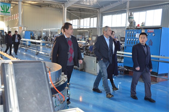 以色列美滋公司亞洲區(qū)市場經(jīng)理Tzur Harel先生在公司領(lǐng)導陪同下參觀考察滴灌(管)帶生產(chǎn)車間