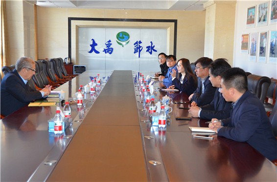 大禹節(jié)水集團副董事長王沖、大禹節(jié)水(天津)有限公司總經(jīng)理張學雙、常務(wù)副總經(jīng)理潘鈺、大禹研究院副院長戰(zhàn)國隆等領(lǐng)導與美滋公司亞洲區(qū)市場經(jīng)理Tzur Harel先生合影留念