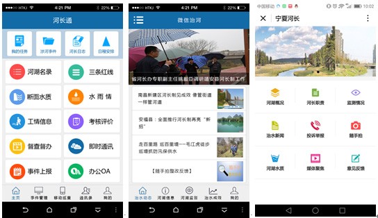 三是移動監(jiān)管,全民參與。提供河長通、巡河通、公眾通、微信治河四大移動產(chǎn)品,助力各級河長、工作人員及社會公眾進行河湖管理、巡查、監(jiān)督和保護等工作。